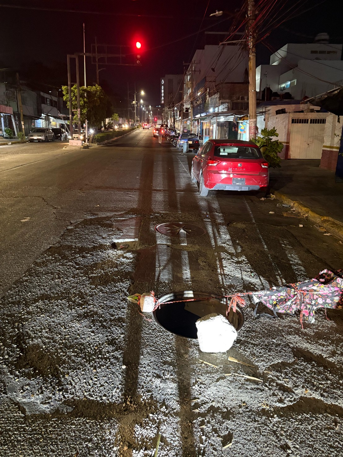 Acapulco, Gro., a 29 de abril del 2025 Minutos después de las 19:00 horas de este miércoles, una joven cayó por accidente dentro de un registro sin tapa perteneciente a la Comisión Federal de Electricidad (CFE) en avenida Ruiz Cortines cerca del Hospital del ISSSTE.