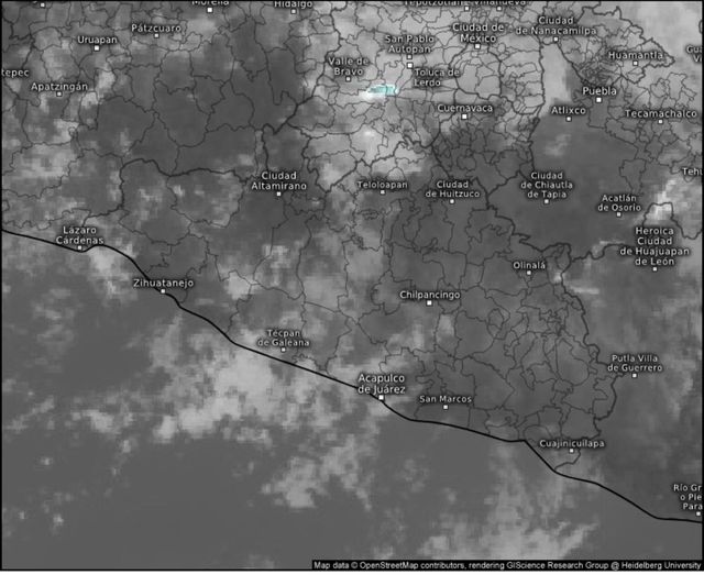 En el caso de Guerrero, se prevé que las precipitaciones y tormentas locales se registren principalmente en las regiones Norte, Montaña, Centro y la parte alta de la Sierra, las cuales podrían estar acompañadas de descargas eléctricas, rachas de viento fuerte y la posible caída de granizo en las partes altas.