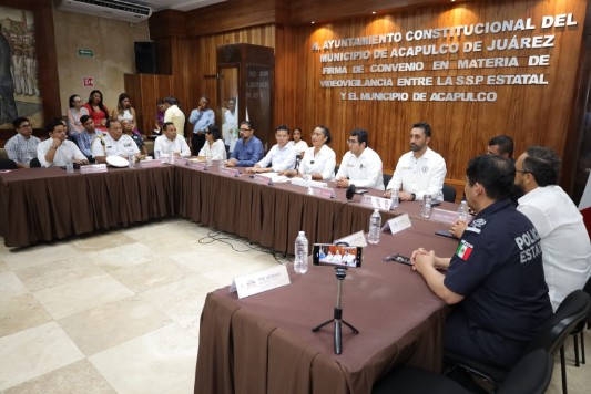 Acapulco, Gro., 23 de junio de 2023.- El Gobierno Municipal, que preside la presidenta, Abelina López Rodríguez, signó un convenio en materia de videovigilancia con la Secretaría de Seguridad Pública del estado de Guerrero (SSPGRO), con el cual, se establece la coordinación entre ambos gobiernos para modernizar y ampliar la infraestructura tecnológica en el municipio.