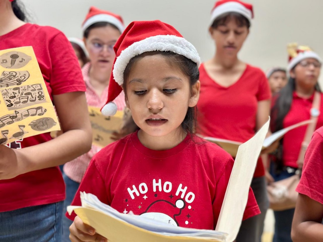 Acapulco, Gro., 10 de diciembre de 2025.- Con el respaldo de la presidenta municipal Abelina López Rodríguez, la Escuela de Iniciación Artística (EIAA) G65 ofreció una demostración de villancicos navideños para celebrar las festividades decembrinas.