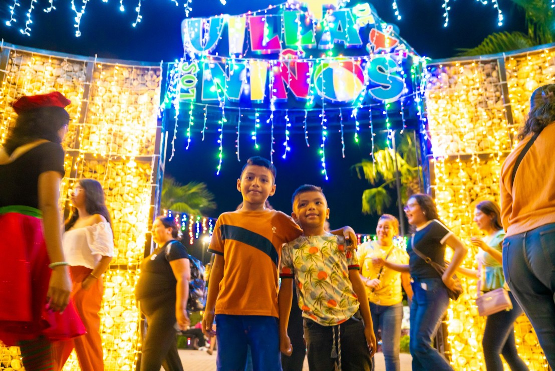 El secretario de Bienestar, Pablo André Gordillo junto al director del Parque, Abel Luvio e invitados especiales que han apoyado al parque, encendieron las luces navideñas colocadas en la Villa de Santa, iluminando las casitas que adornan todo el espacio de recreo de la Villa de la Niñez.