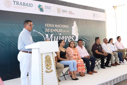 Iguala, Gro., 14 de marzo de 2023.- Acortar la brecha laboral entre hombres y mujeres es uno de los objetivos del gobierno de la Transformación, porque “estamos convencidos que con estas acciones se promueve la igualdad de género” aseguró el secretario del Trabajo y Previsión Social Luis Armando Baños Rendón al inaugurar la Feria Nacional del Empleo de las Mujeres, en la que se logró ofertar 358 espacios laborales en 26 empresas, principalmente para mujeres, que otorgarán todas las prestaciones de ley.