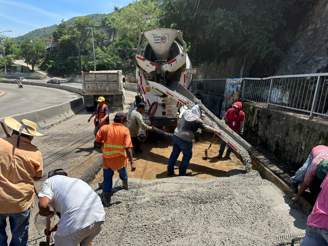 La dependencia lleva a cabo la demolición de la carpeta asfáltica dañada, la preparación de la base y la aplicación de siete metros cúbicos de concreto hidráulico premezclado. El objetivo es reforzar la resistencia de la superficie y mejorar las condiciones de movilidad en este acceso estratégico al poniente de Acapulco.